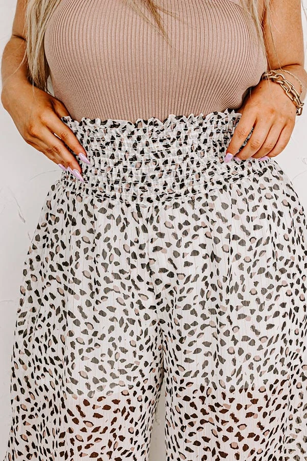 Keep cool in our fashionable white plus size ‘Boat Weekend’ pants featuring ultra lightweight material patterned with a small black spotted print, a wide high smocked waistline, and a relaxed silhouette that falls straight into ankle-length hemlines! on products