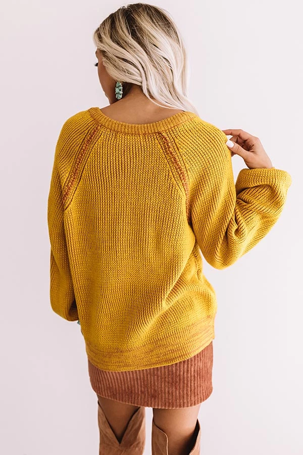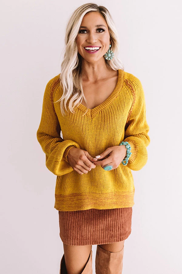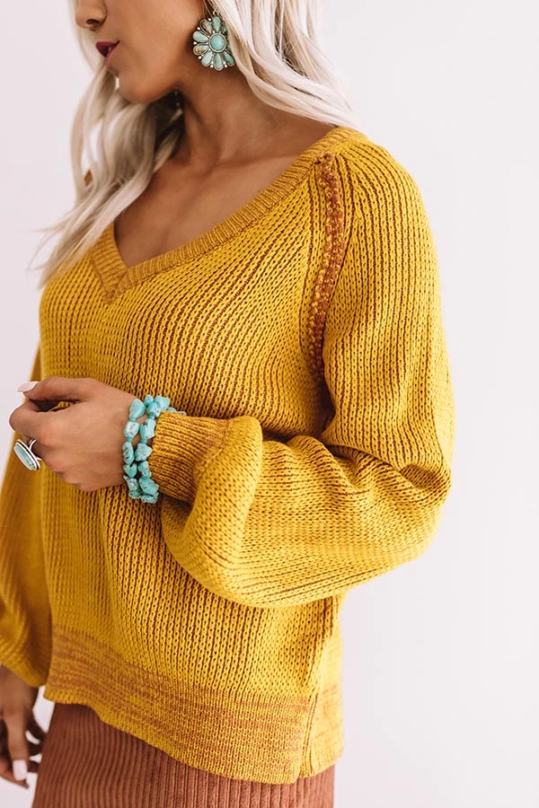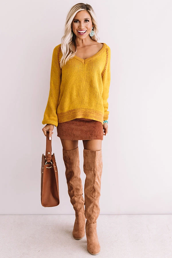 You won’t have to stress about having the perfect OOTD when you have this warm mustard sweater, just throw it on and “call knit a day!” It features loose knit stretchy material, a scooped v-cut neckline, exposed accent seams, long loose bishop sleeves with wide fitted cuffs, and a relaxed bodice that falls into a rounded hemline! This vibrant piece styles perfectly with a fall colored skirt, a tote, and a neutral over the knee boot, but you can also wear it under a vest with some black flares, our “Plans In Paris Wool Hat in Taupe,” and “The Seraphina Faux Leather Wedge in Taupe!”
