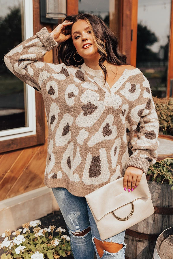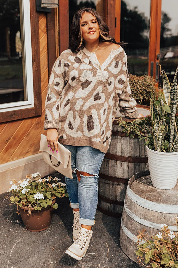 Plus Size – Keep cozy all winter long in this darling mocha colored sweater featuring soft knit material pattered with a brown hued leopard print, a button up bodice with a rounded neckline, ribbed trim detailing, long loose sleeves, and a slouched silhouette that falls into a straight hemline!