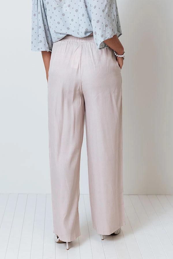 You are sure to have a joyful evening when you wear these chic rose quartz colored pants featuring lightweight and flowy material, a high elastic waistline with a tie belt, accent side pockets, and a relaxed silhouette that falls into straight ankle-length hemlines!