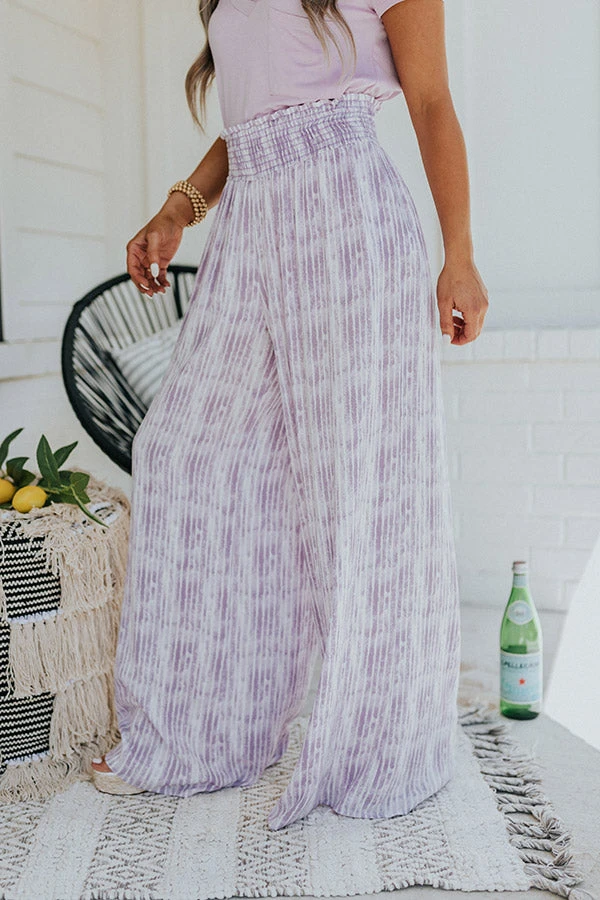 Cruise into summer looking fabulous in these adorable pants featuring lightweight flowy material patterned with abstract purple and white vertical stripes, a wide smocked waistline, and ultra an ultra relaxed silhouette that falls straight into floor-length hemlines!