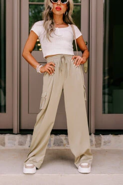 Sure And Steady High Waist Trousers In Sage