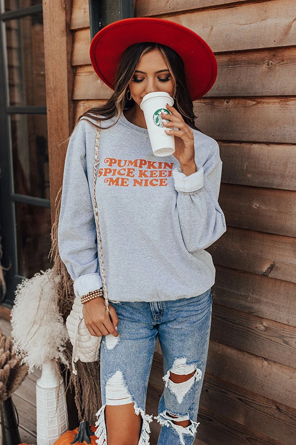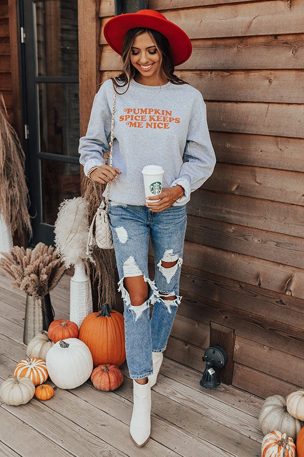 Keep casual but cute in our trendy grey ‘Pumpkin Spice Keeps Me Nice Sweatshirt’ featuring soft material with cute orange lettering on the front, a rounded neckline, long loose sleeves with fitted cuffs, and a slouched silhouette that ends in a straight hemline!