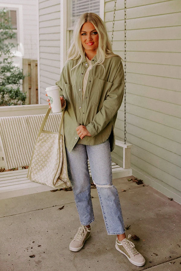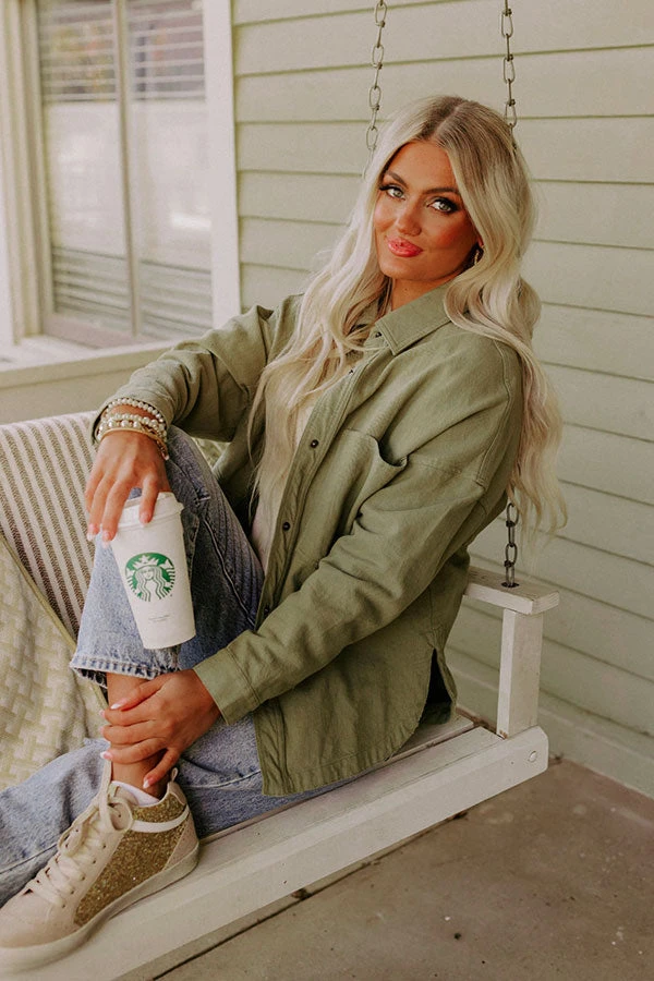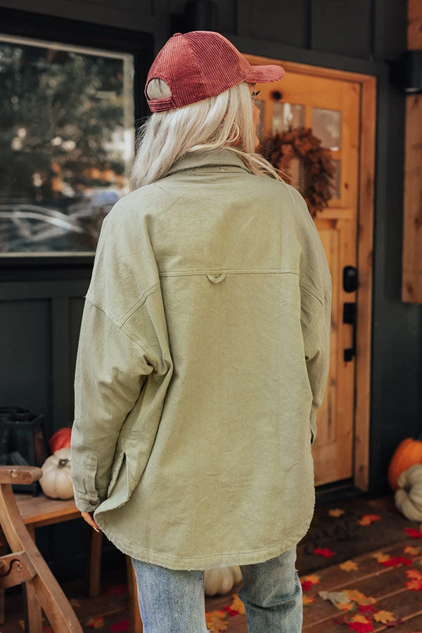 Take a lovely stroll in our ‘Scenic Hike Jacket’! Features a 100% cotton material, collared neckline with metal button closure at the front and cuffs, long sleeves, and two chest pockets. This has a feminine silhouette that falls into a round hemline with subtle distressing and accent slits.