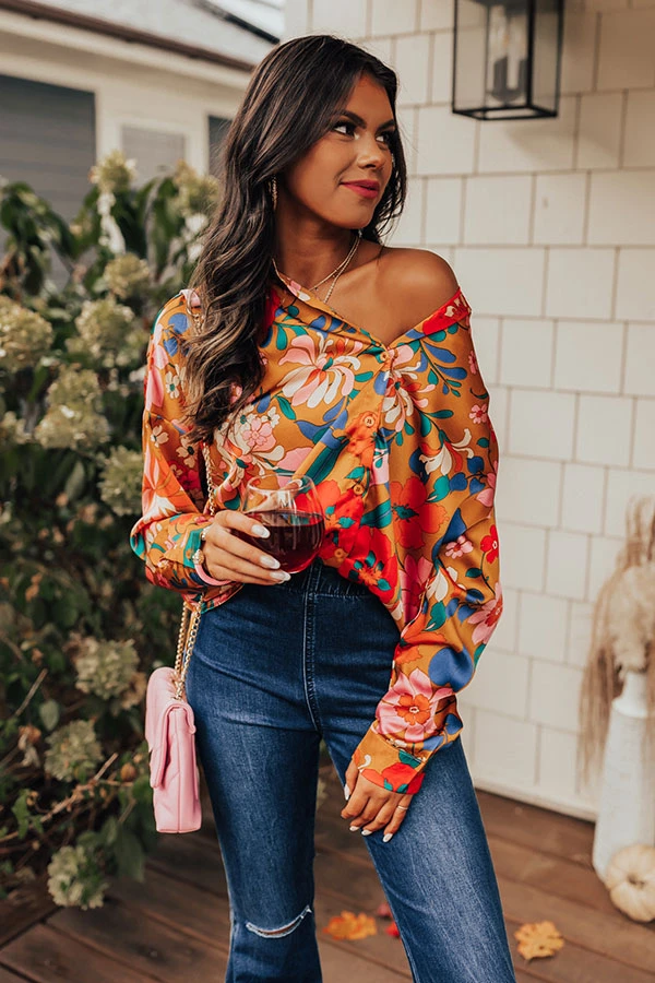 – Add some floral flair to your outfit with this trendy top!