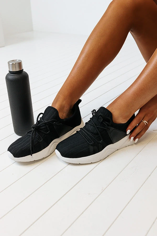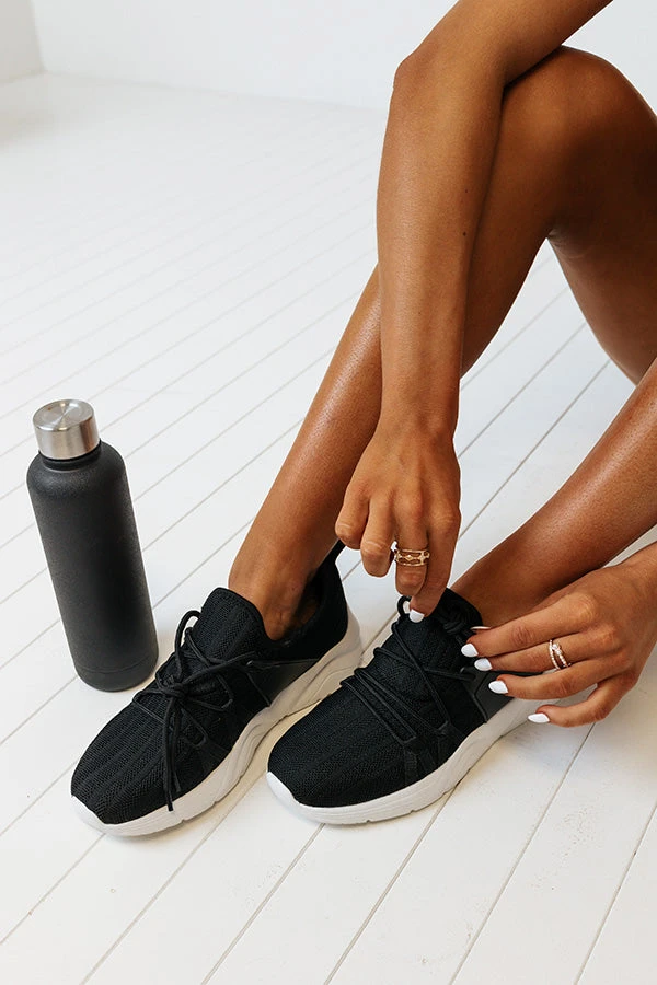 A timeless athleisure piece, our simple but stylish black ‘Arwyn Sneaker’ features a flat but comfortable sole, a pull tab heel, and a lightweight lace-up silhouette! These sneakers run more true to size.