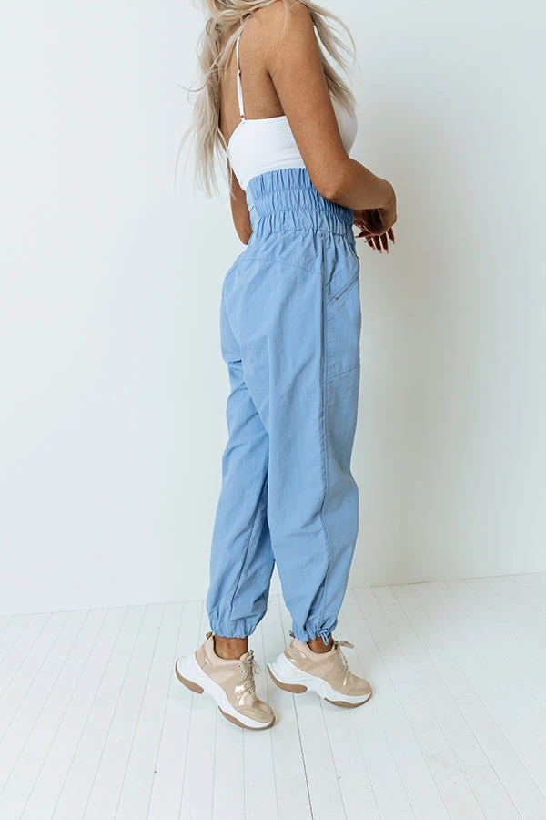 You will look pretty and practical in our eye-catching airy blue ‘Huxley’ windbreaker featuring sleek and lightweight windbreaker material, an ultra wide and high smocked waistline with an accent mesh pocket in the back, two zip closure side pockets, and a slouched silhouette that ends in cinched ankle-length hemlines!