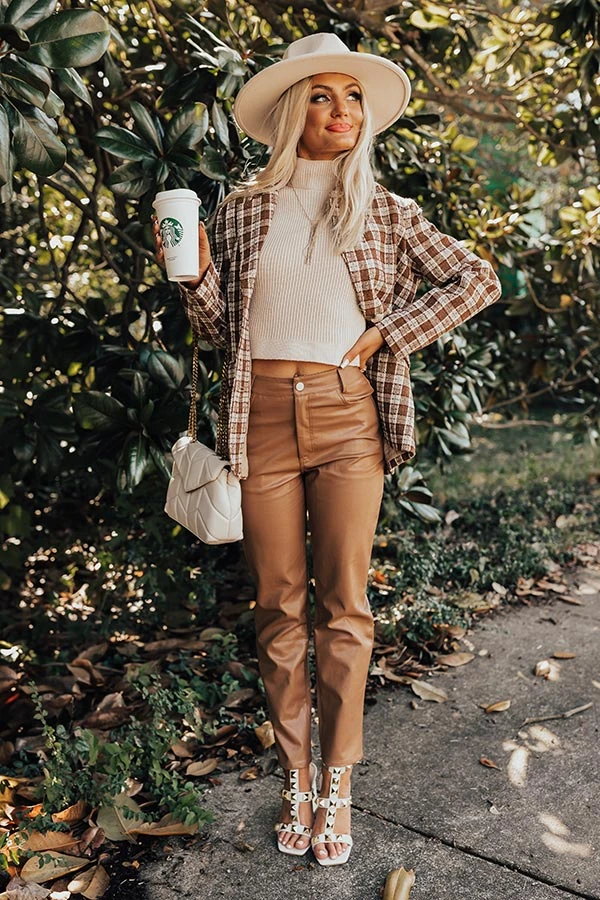 Add a touch of edge to your wardrobe with our chic ‘Kael’ high waist pants! Features a lightweight faux leather material, a hidden zip fly with a button closure with belt loops, the classic four pocket cut, and a flattering silhouette that ends in straight ankle-length hemlines.