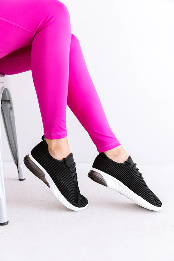 Look stylish everyday in our adorable black ‘Tuesday Sneaker’ featuring lightweight material with ribbed texturing and meshed detailing, rounded closed toes, flat soles with a slightly lifted heel, and a lace-up slip on silhouette! This sneaker fits more true to size.