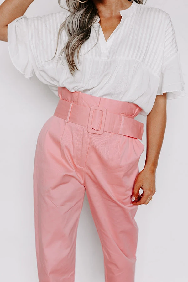 – A high elastic banded waistline with a hidden zip fly and hook closure as well as a wide detachable matching belt